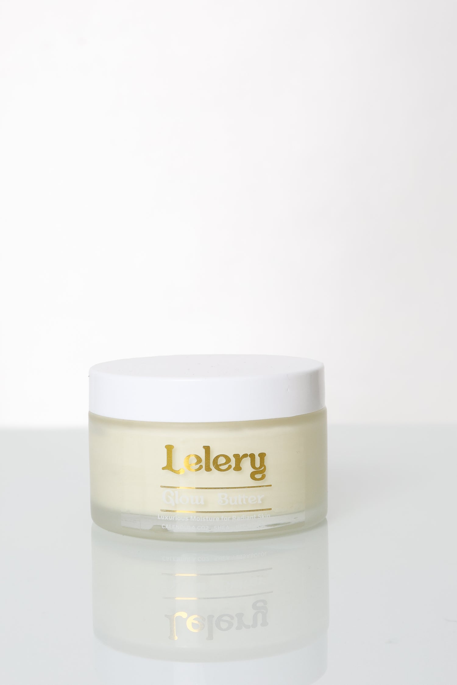 Indulge in radiant nourishment: A rich, nourishing blend of Shea, Mango, and Cocoa Butters infused with botanical oils and beeswax to deeply moisturize and enhance natural radiance.
